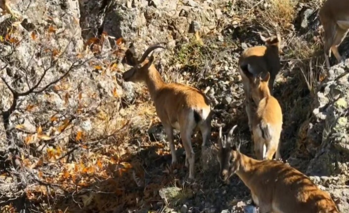 Erzincan’ın sarp dağlarında yaşayan yaban keçileri, sonbaharın eşsiz renkleri arasında objektiflere yansıdı.