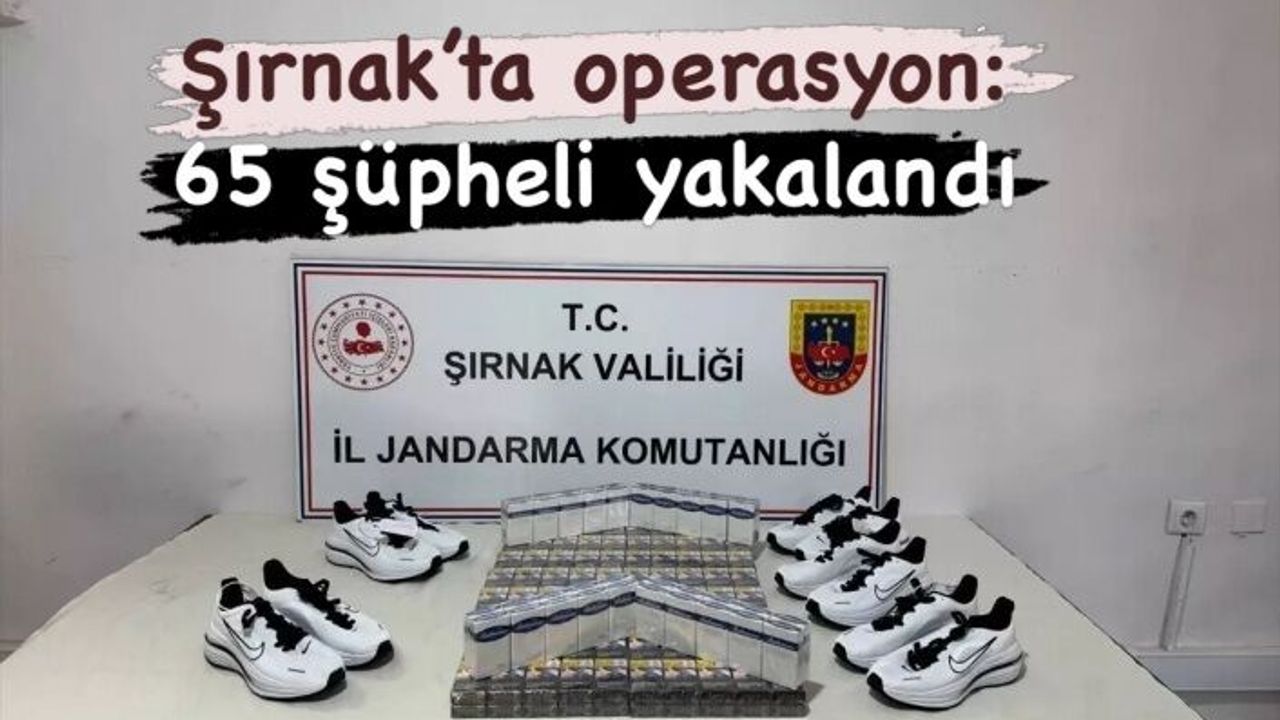 Şırnak'ta kaçakçılık ve asayiş operasyonlarında yakalanan 65 şüpheliden 1'i tutuklandı.